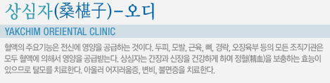 ¶Ç µ¿ÀǺ¸°¨¿¡´Â ¡° »ó½ÉÀÚÀÇ ¼ºÁúÀº Â÷°¡¿ì¸ç ¸ÀÀº ´Þ´Ù. ¼Ò°¥À» Ä¡·áÇÏ¸ç ¿ÀÀåÀ» ÀÌ·Ó°Ô ÇÏ¸ç ¿À·¡ º¹¿ëÇÏ¸é ±¾ÁÖ¸²À» ´À³¢Áö ¾Ê´Â´Ù. »ó½ÉÀÚ´Â ¹é¹ßÀ» °Ë°Ô ÇÏ´Ï ¼úÀ» ºú¾î ¸Ô´Â °ÍÀÌ ÁÁ´Ù. ¶ÇÇÑ »ó½ÉÀÚ ÇÑ ±Ù(600g)¿¡ ¿ÃìÀÌ ÇÑ µÇ( ÇÑ È©ÀÇ ¿°ö )¸¦ º´¿¡ ´ã¾Æ ºÀÇÑ ÈÄ¿¡ ÁýÀÇ µ¿ÂÊ¿¡ ´Þ¾Æ¼ ¹éÀÏÀÌ µÇ¸é °ËÀº ÁøÈë°ú °°ÀÌ µÇ´Âµ¥, À̰ÍÀ¸·Î ¹é¹ßÀ» ¿°»öÇÏ¸é °Ë°Ô µÈ´Ù. »Í³ª¹« »Ñ¸®²®ÁúÀº ºÎÁ¾, °¡·¡, °¥ÁõÀ» Ä¡·áÇÑ´Ù. »Í³ª¹« ÀÙÀº ºÎÁ¾À» Á¦°ÅÇÏ¸ç ´ëÀå ¼ÒÀåÀ» ÀÌ·Ó°Ô ÇÑ´Ù. »Í³ª¹« °¡Áö´Â ±âħ, ¼ÒȺҷ®, °ßºñÅëÀ» Ä¡·áÇÑ´Ù. »Í³ª¹« ²ÉÀº ÇǸ¦ ÅäÇÏ´Â Áõ»óÀ̳ª ´ëÇϸ¦ Ä¡·áÇÑ´Ù. ¡± °í ±â·ÏµÇ¾î ÀÖ´Ù.